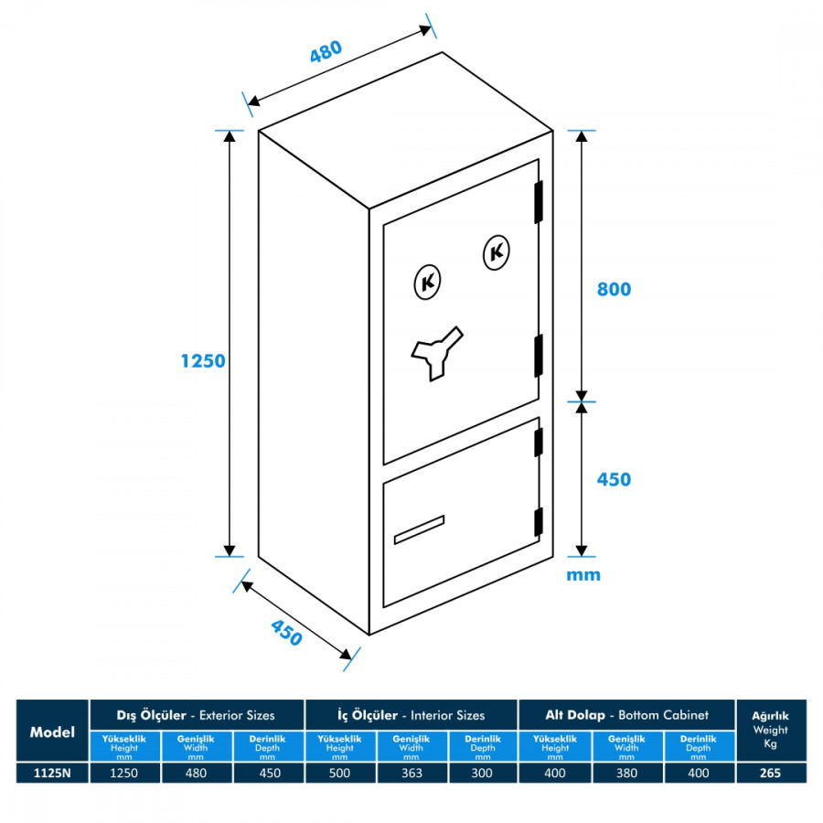 Model 1125N-KK Ofis Tipi Çelik Kasa, güvenlik ve dayanıklılık açısından en üst düzeyde tasarlanmış bir üründür. Çelik kasa, içerisindeki değerli eşyalarınızı veya belgelerinizi güvende tutmak için ideal bir seçimdir. İşyerlerinde, ofislerde veya evlerde kullanım için uygun olan bu çelik kasa, kendini kanıtlamış kalite ve güvenilirliği ile öne çıkmaktadır.