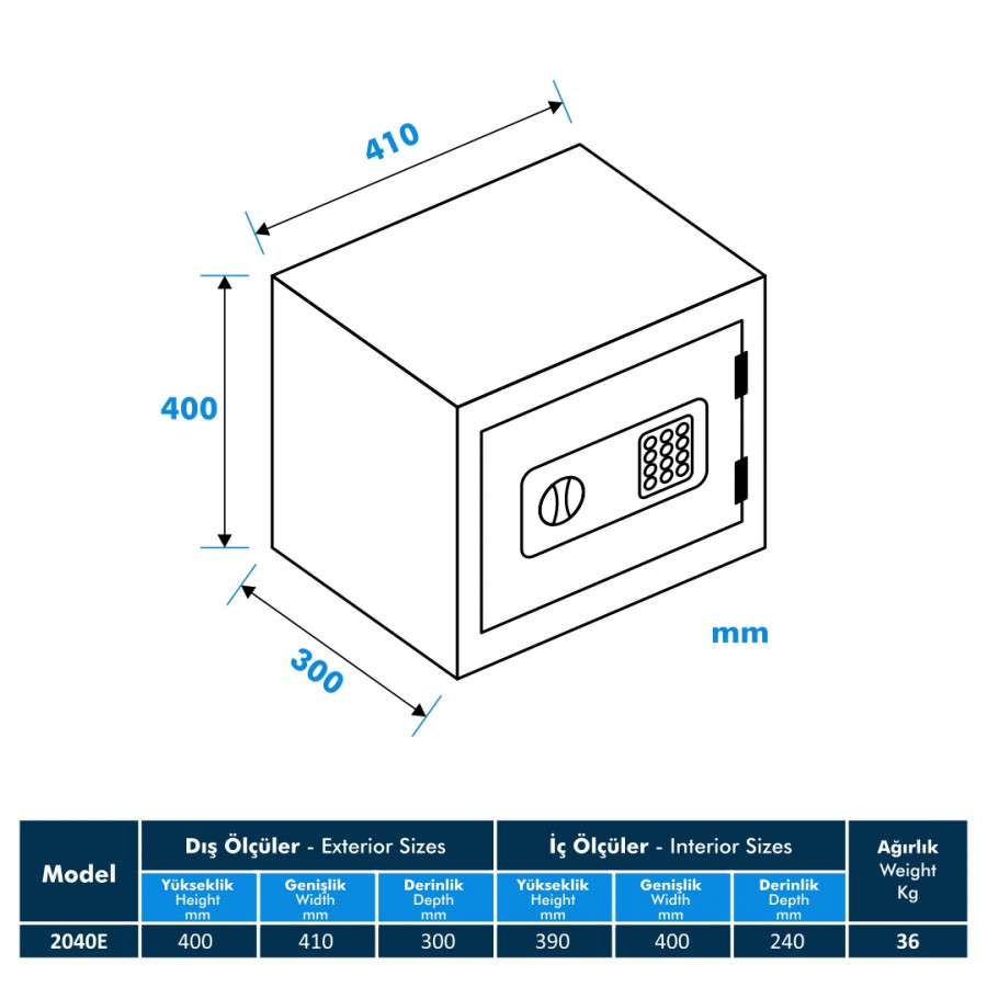 Model 2040-E Kadifeli Elektronik Ev ve Ofis Kasa, ev ve ofisler için en güvenli ve şık kasa çözümüdür. Yüksek kaliteli malzemeler ve son teknoloji ürünleri kullanılarak üretilmiştir. Bu sayede, kişisel ve önemli dokümanlarınızı, para, mücevher ve diğer değerli eşyalarınızı güvende tutarken, aynı zamanda odanıza estetik bir dokunuş katmaktadır.