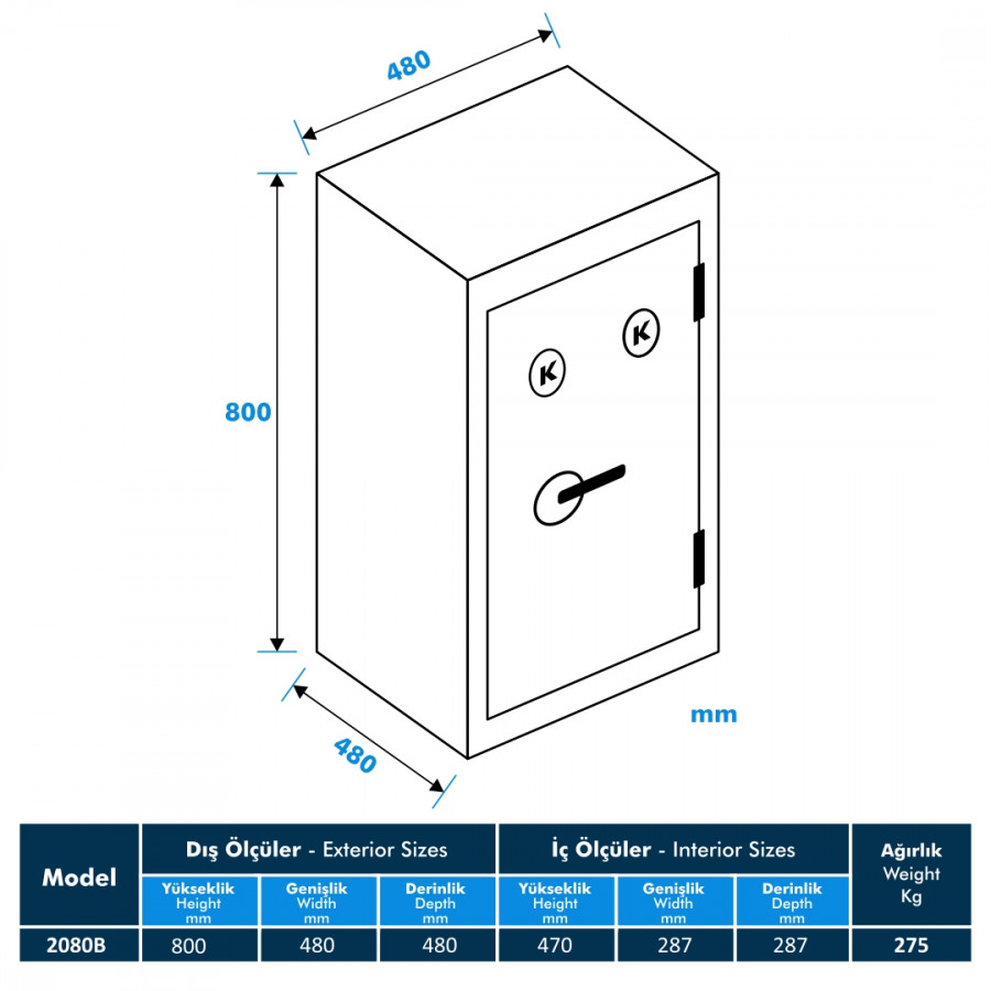 Model 2080B-KK Ev ve Ofis Çelik Kasa, güvenliğe ve sağlamlığa önem verenler için tasarlanmış bir üründür. Özellikle evlerde ve ofislerde önemli belgelerin, değerli eşyaların ve nakit paranın saklanması için ideal bir çözümdür. Bu çelik kasa, en hassas varlıklarınızı korumak için en kaliteli malzemelerden üretilmiştir.