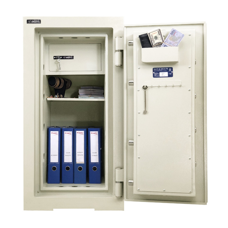 Model 2105M-KE Yüksek Güvenlikli Çelik Kasa, yüksek güvenlik standartlarını karşılamak için tasarlanmıştır. Güçlü bir şifreli kilit sistemi sayesinde, kasanızın içindeki değerli eşyalar her zaman güvende olacaktır. Ayrıca, kasanın içinde bir adet gizli kilit mekanizması da bulunmaktadır. Bu sayede, kasanızın güvenliği daha da arttırılmaktadır.