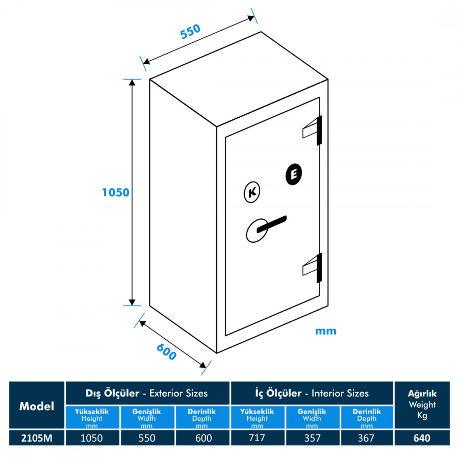 Model 2105M-KE Yüksek Güvenlikli Çelik Kasa, mükemmel koruma ve dayanıklılık sunan yüksek kaliteli çelikten üretilmiştir. Bu kasa, her türlü değerli eşyayı güvenli bir şekilde saklamak için tasarlanmıştır.