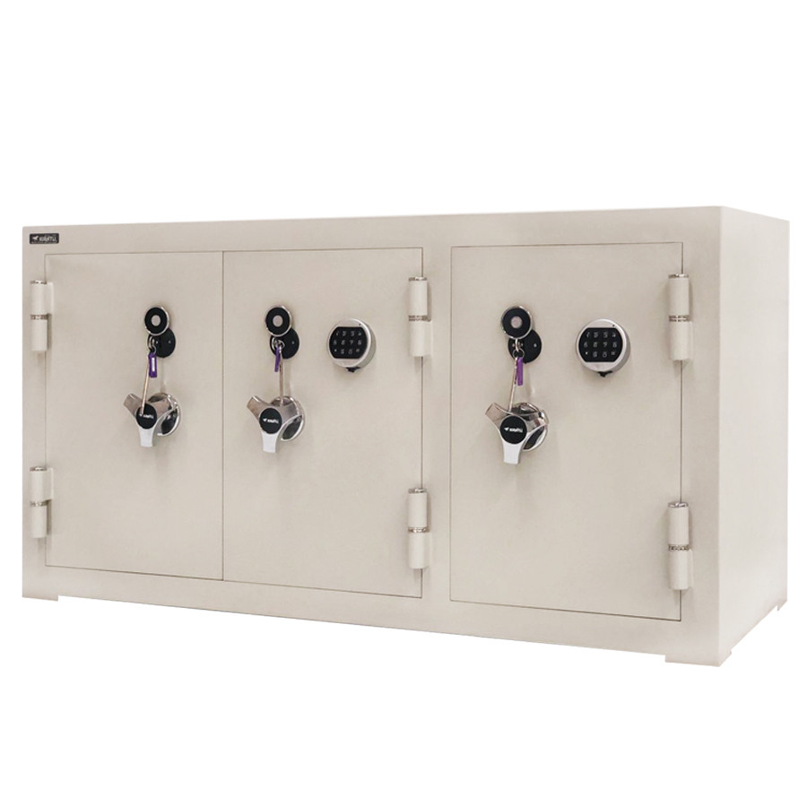3200M-KKE Kuyumcu Kasa, tamamen çelik konstrüksiyonlu ve alev geciktirici özelliklere sahiptir. Bu sayede ürün, yangın gibi acil durumlarda bile müşterilerinizin değerli eşyalarını korur. Ayrıca, çelik konstrüksiyonu sayesinde ürün, kırılma ve çalınma gibi durumlara karşı da dayanıklıdır.