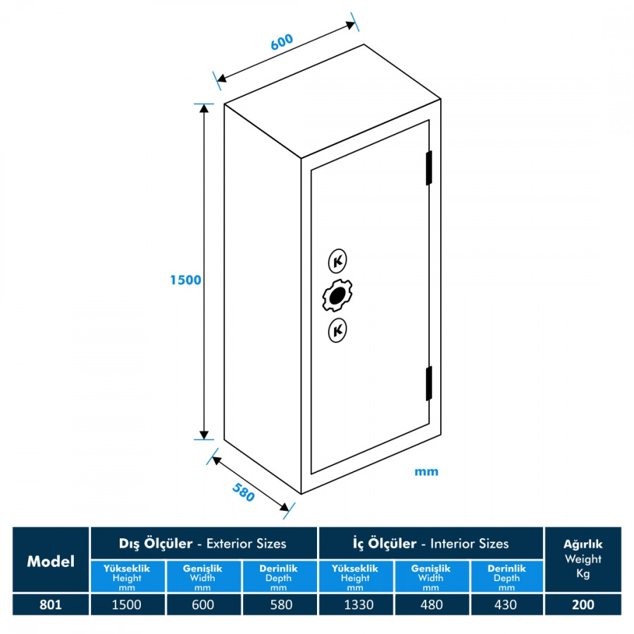 Model 801 KK Yanmaz Evrak Kasa, güvenliği ve kaliteyi bir arada sunan ideal bir seçenektir. Değerli evraklarınızı ve eşyalarınızı güvenle saklayarak, olası zararların önüne geçebilirsiniz. En değerli varlığınız olan evraklarınız için en iyi koruma sağlamak istiyorsanız, Model 801 KK Yanmaz Evrak Kasa sizin için doğru tercih olacaktır.