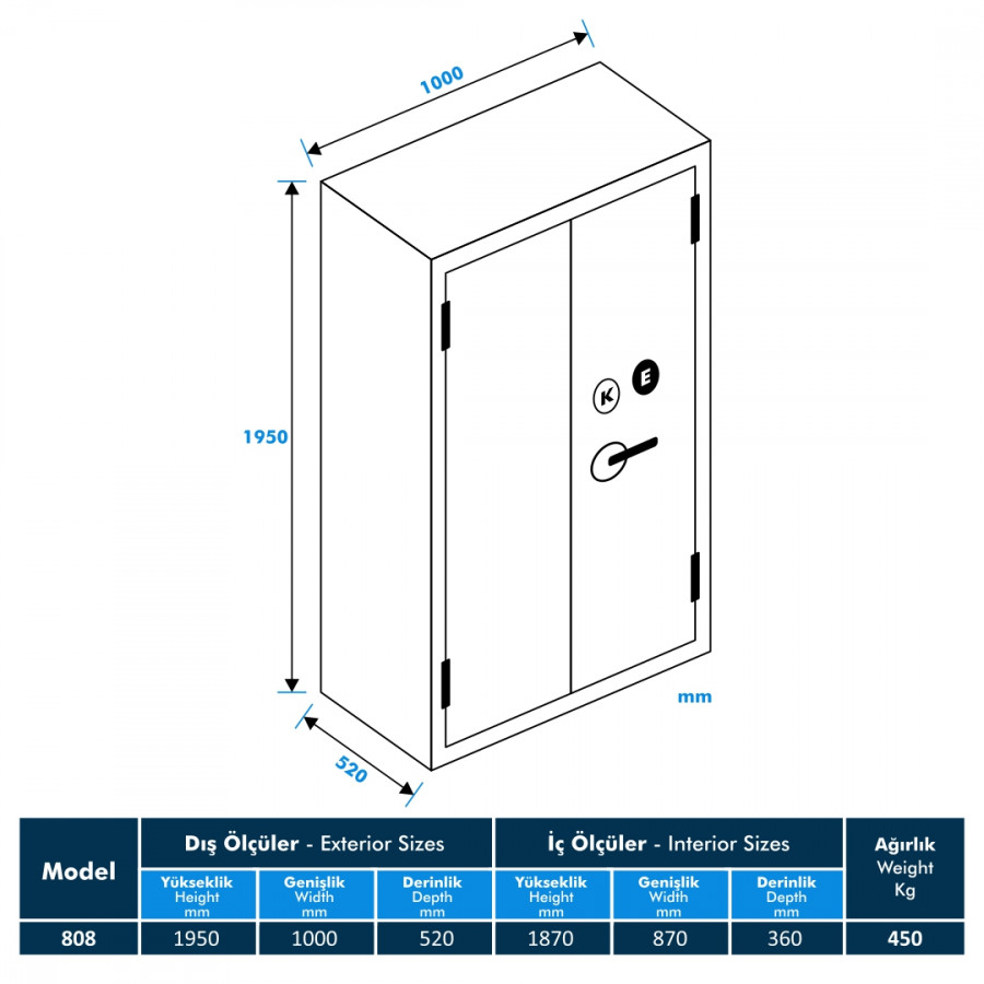 Model 808 KE Yanmaz Evrak Kasa, içindeki eşyaların tasarrufu için geniş bir depolama alanına sahiptir. Ayarlanabilir rafları sayesinde evrakların düzenli bir şekilde depolanması sağlanabilir ve istenilen konumda yerleştirilebilir. Ayrıca, özel bir anahtar ile kilitlenebilir bölmede değerli eşyalarınızı güvenli bir şekilde saklayabilirsiniz.