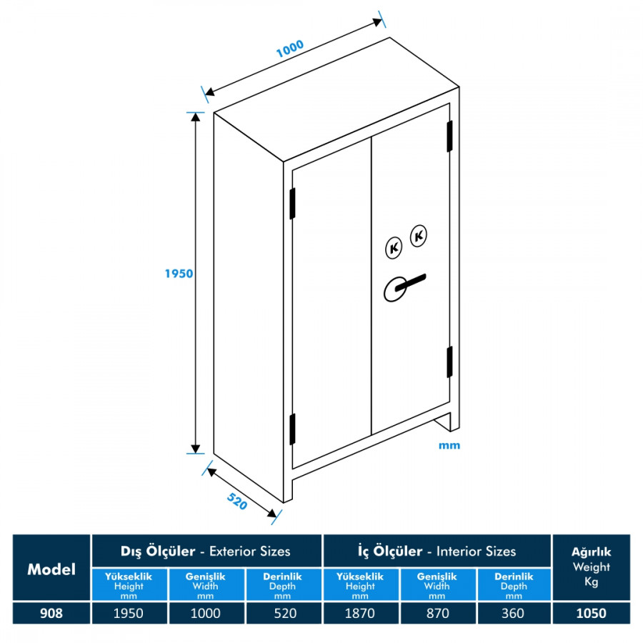 Model 908 KK Betonlu Yanmaz Evrak Kasa, güvenlik ve dayanıklılığı ile evrakların korunması için tasarlanmış bir üründür. Üstün teknoloji ve mühendislik ile üretilmiş olan bu kasa, sizin değerli evraklarınızı yangına ve diğer tehlikelere karşı güvence altına alır.