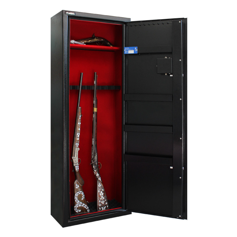 Bu özel kasa, özel alaşımlı çelik malzemeden üretilmiş olup, dayanıklı ve güvenli bir şekilde silah ve tüfeklerinizi saklayabilmeniz için özel olarak tasarlanmıştır. Tamamen çelik gövdesi sayesinde, düşük derecede alev ve yüksek sıcaklık gibi çeşitli olumsuzluklara karşı dayanıklılığını korur.
